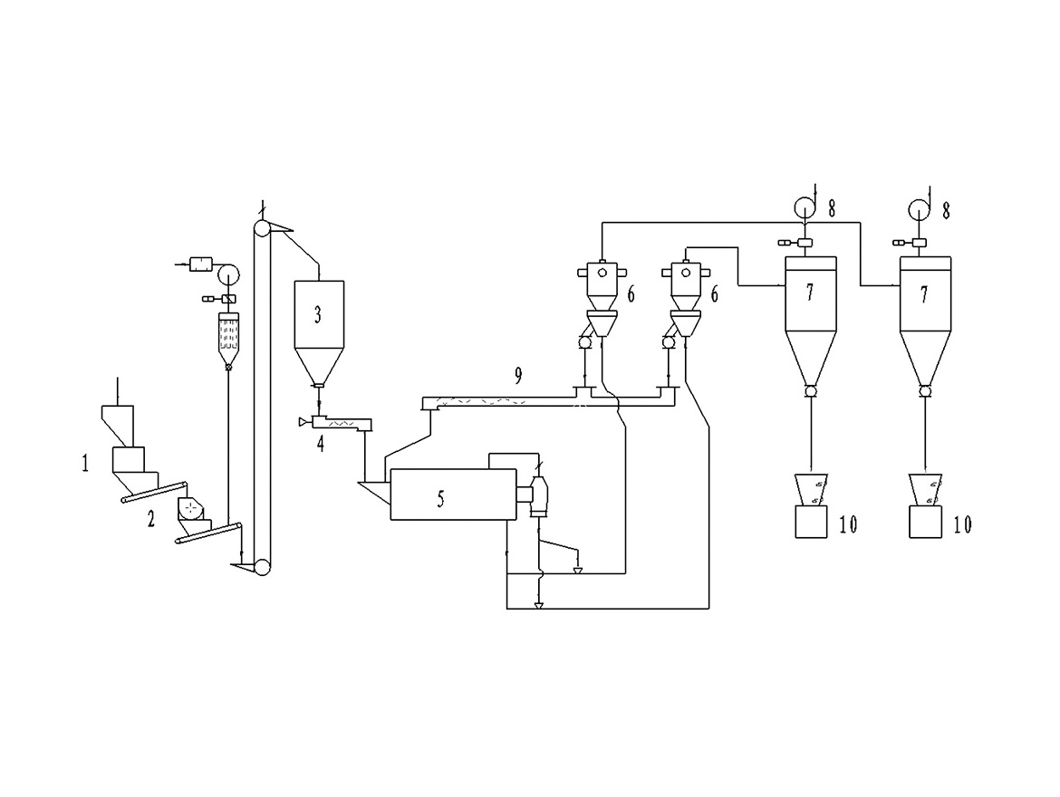 气流粉碎机与旋风分离器、除尘器、引风机组成一整套粉碎系统。...